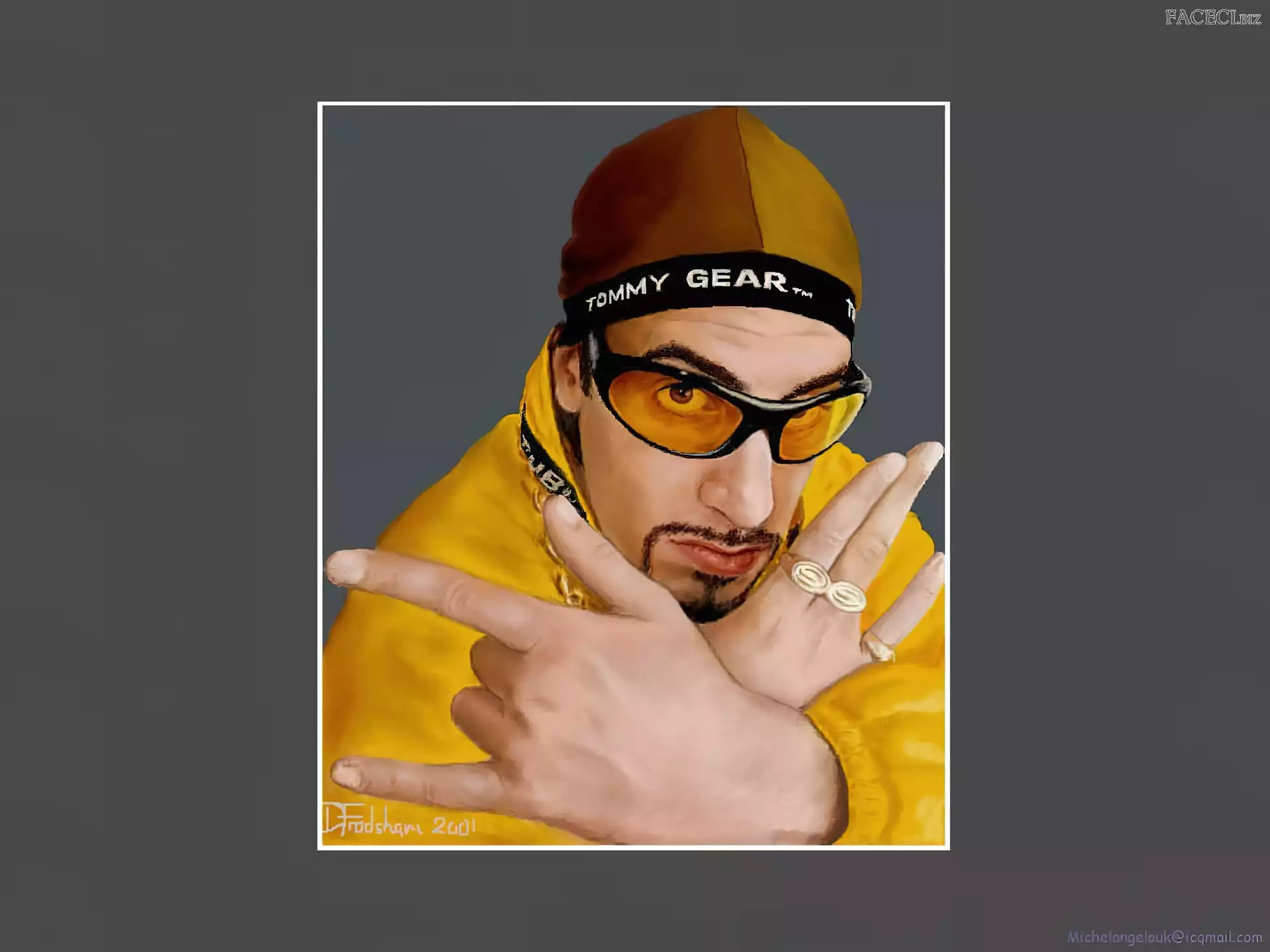 Sasha Baron Cohen, żółty strój złoty strój, Sasha Baron Cohen, okulary Sasha Baron Cohen, niebieski dres Sasha Baron Cohen, gruby łańcuch Sasha Baron Cohen, borat Sasha Baron Cohen, zdjęcia Sasha Baron Cohen, ali g